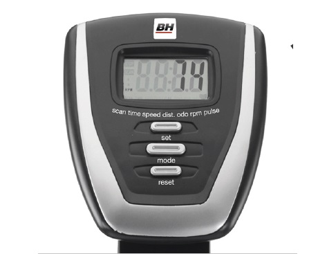 LCD monitori: aika, RPM, nopeus, matka, kalorit, ODO, pulssi. Pulssimittaus-systeemillä voidaan tehdä tavoitteellista treeniä.