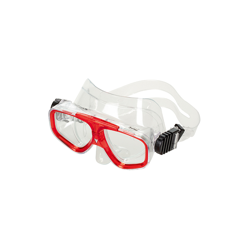 Materiaali: Laadukas polyvinyylikloridi, kestävä kovalasinen linssi, läpinäkyvä ja pehmeä PVC-tiiviste sekä säädettävä päänauha.
